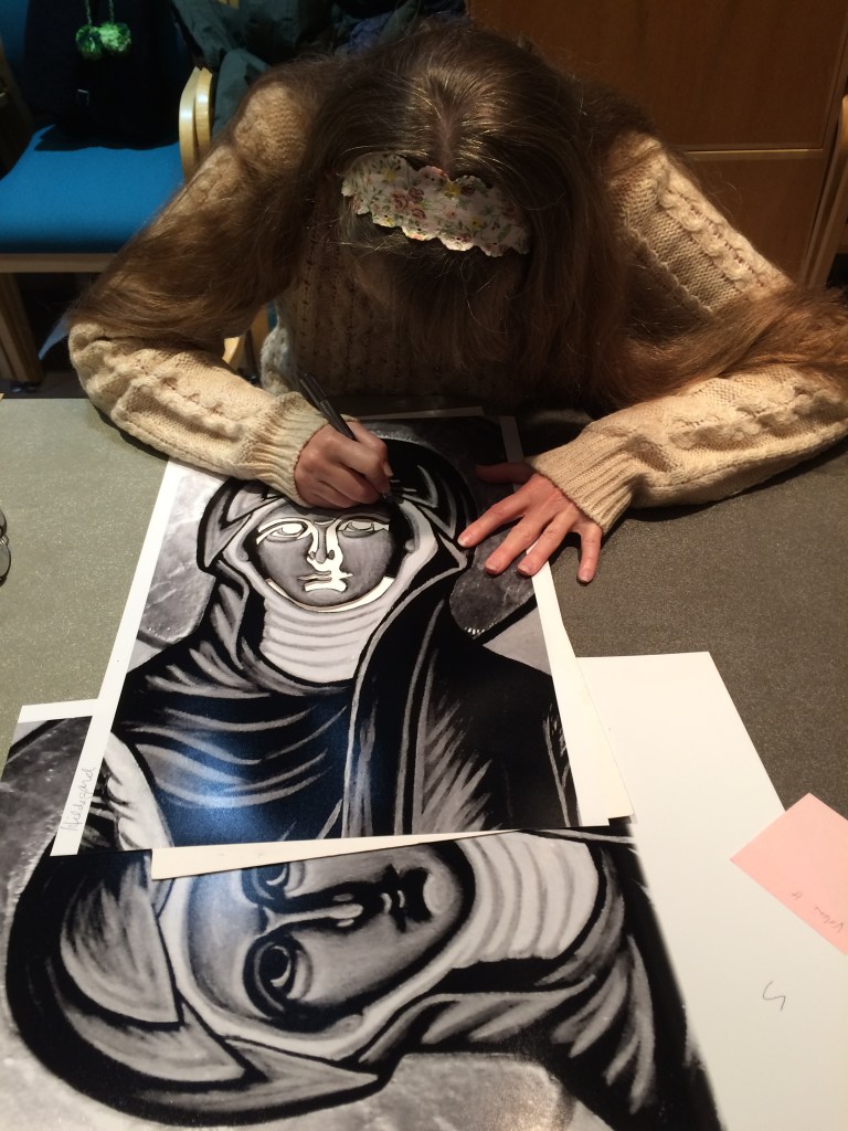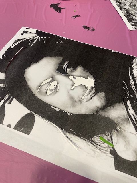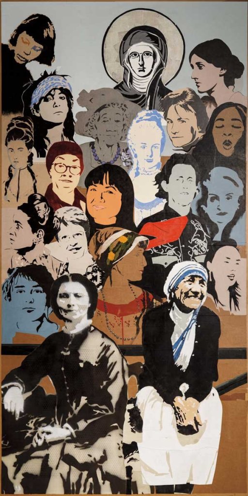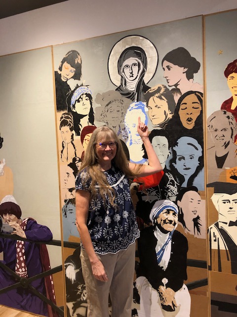 I have had the privilege of participating in Jann Haworth and Liberty Blake’s public art project Work in Progress on two occasions. In March 2017, I got to create and paint the stencil of one of my favorite Medieval mystics, Hildegard of Bingen. Then in September 2024, I prepared the stencil of Jannutal Ferdous Ivy, an amazing filmmaker, writer, and disability rights activist.